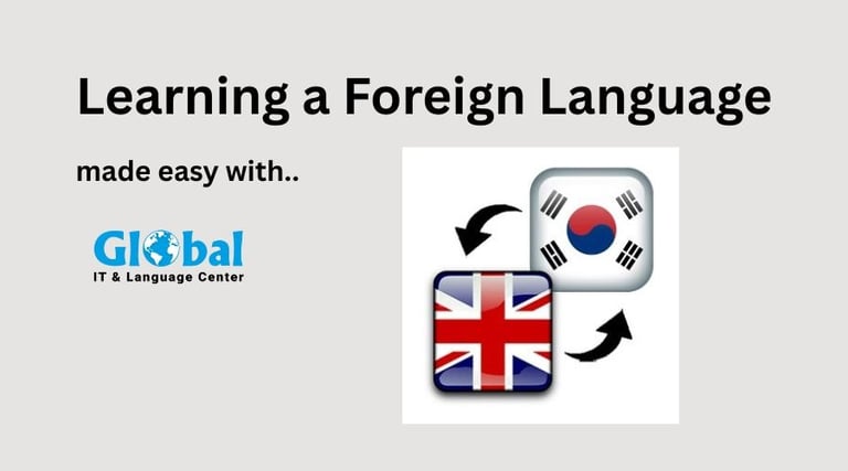 English grammar can be tricky, especially tenses. Korean has a unique writing system (Hangul) but is very logical once learned.